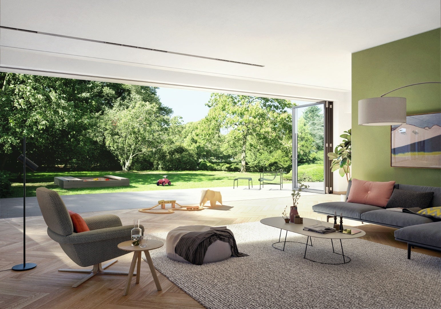 窓、ドア、ファサードのシステムソリューション開発を手掛けるドイツのシステムサプライヤー、Schueco International KGの日本法人シューコー・ジャパンは、新たなアルミ製の断熱フォールディングドア(折れ戸)システム「AS FD 90.HI」を発売した。同製品は、大開口部に対応しながら、世界的なデザイン賞を受賞した意匠性と優れた断熱性能を兼ね備え、住宅、商業施設、ホテルなどに開放感と快適性を提供する。 製品サイズは、最大寸法が幅1.5m、高さ3.5m、かつ最大幅9mの大開口に対応。縦框を突き合せた幅はわずか90mmとスリムなため、ドアを閉じた状態でも視界を遮る要素が少なく、ガラスのファサードのような美しい眺望性を確保できる。スリムな形材で構成された大型の折りたたみ式ガラスユニット(フォールディングドア/折れ戸)が、開閉状態を問わず室内外を視覚的に連続させ、周囲の風景との一体感を生み出す。断熱性能は、U値1.10W/m2・K ※ という高い性能を誇り、エネルギー効率の向上と建物のランニングコスト削減に貢献。加えて、使用後にアルミやその他の部材を原材料サイクルに容易に戻せる、再利用可能なCradle to Cradle®(C2C)認証済みシステムで、サーキュラーエコノミーに貢献するサステナビリティ性にも優れる。 また、世界的なデザイン賞として知られるドイツの「iFデザイン賞」や「RedDotデザイン賞」を受賞。優れた機能性、洗練されたミニマルな意匠性を両立し、スタイリッシュなカラーラインナップにより、建築デザインに合わせた最適な選択が可能となる。