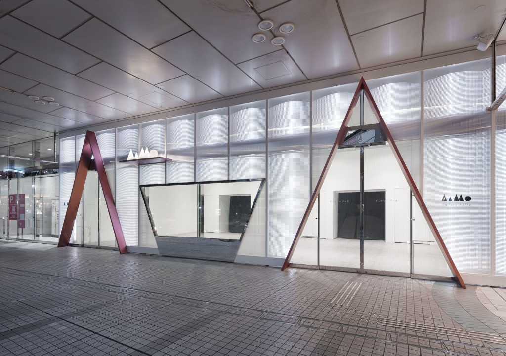 “Gallery AaMo” is designed based on the concept of fusion of art and entertainment. As a place of introducing new culture, we aimed at communication design that stimulates the curiosity of visitors. The logo was designed with triangles and circles abstracting the characters of AAMO. Its silhouette looks like a building block, giving a modern impression with a nostalgic feeling. By utilizing the refraction of light, the facade becomes a mysterious light wall. Its expression changes according to angles and distance. A lighting three-dimensional logo object and triangle gate that is an entrance of gallery represent a playful spirit. (Toshihiro Kawasaki / WALTZ.)