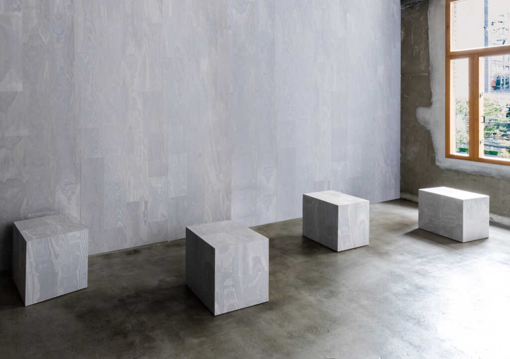 「NUNOUS STONE」は、上記のブロック形状に生成された製品をそのままアクセントパネルや家具、店舗什器、ディスプレイ等として使用する製品。