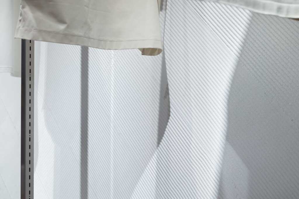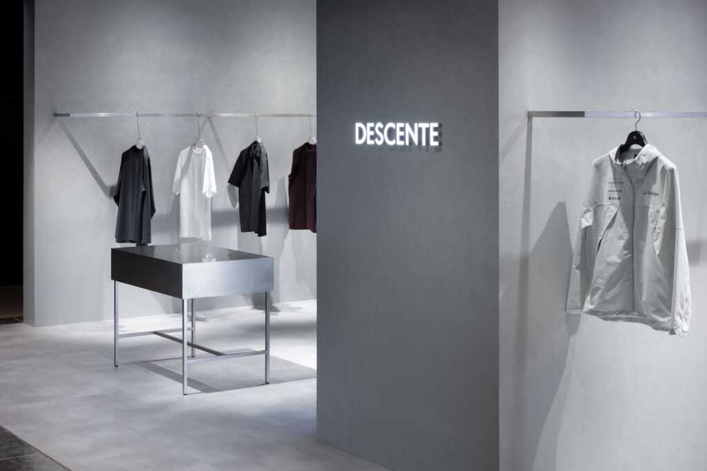 ものづくりの原点を大切にしながら、時代の要求を先取りし製品化してゆくDESCENTEの思想を空間的に表現することを目指した。(鬼木孝一郎/ODS