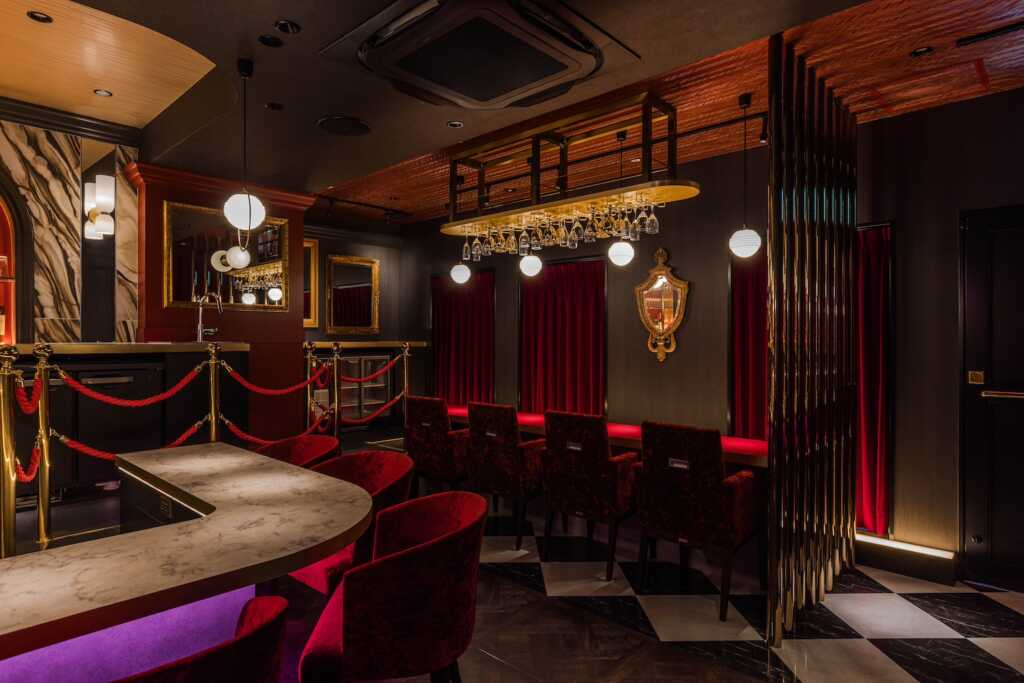 宮城県仙台市の最大の繁華街国分町の中心に位置する、ビルの1階路面店に計画されたバニーバーである。ガールズバー業態であるが、大人の社交場として高貴でラグジュアリーで、また高揚感を感じる非日常な空間を目指した。キーカラーは情熱的な赤とし、ラグジュアリーなゴールドとのコンビネーションでバランスよく配置した。海外にあるクラシカルな佇まいのバーをイメージし、カラーの間接照明で高揚感を演出。また、カウンター内はステージのように段差をつけて、バニーが演者として行き交う様子をエンターテイメントとして演出している。高貴と高揚感がバランスよく演出できたエンターテイメントバー空間となった。(平野大偉/イチミリデザイン)