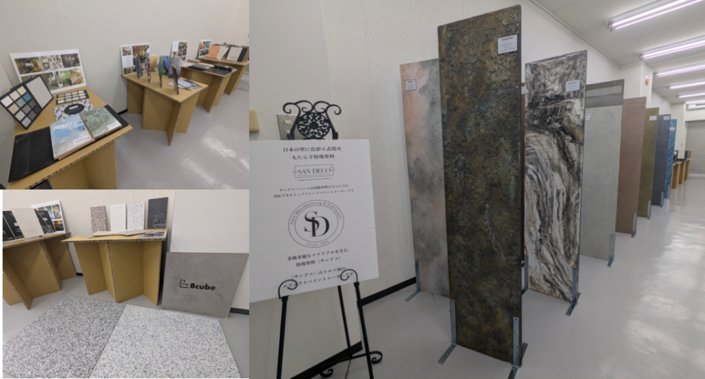 全点不燃の和紙壁紙。植物由来の材料で作られた織物壁紙。安全・環境に配慮したオレフィン壁紙。人と地球に優しい3つのエコクロスを展示いたします。是非ご覧ください。