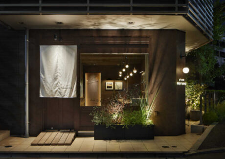 名店が立ち並ぶ東京・恵比寿。シェフの本倉氏は懐石料理店で修行後、ピザ職人に師事した異色の経歴の持ち主だ。「ナポリピッツァと和の融合」というシェフのキャリアを体現したこの言葉から、デザイン計画を行った。エントランスは、シェフのルーツを表す和の暖簾でお客様を迎える。店内のメインカウンターには、イタリアから取り寄せた独特な表情を持つ御影石を設え、シェフのオリジナリティー溢れる世界観を表現した。こだわりのピザ釜は、大正10年創業の老舗竈屋によるもので、シェフの”丸いピッツァを通して人の輪を大切にし和を繋いでいきたい”という想いが込められている。